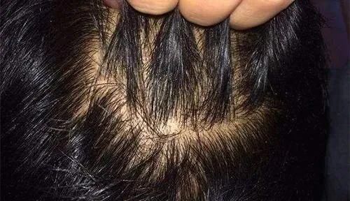 油脂分泌过多,毛发稀疏,有些毛干比较细小,头皮还有一些小红点。目前未见明显的脱发,但是部分毛干偏小,偏细,这部分毛发发育不完全,或者已经在退化。