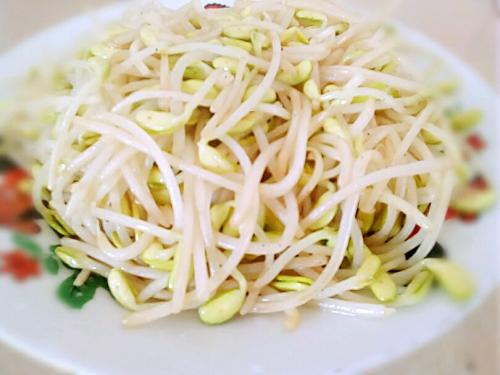 5、素炒黄豆芽,将锅烧热,然后加入花生油烧热后倒入洗好的黄豆芽炒至半熟,加入适量的酱油、精盐、姜片及适量水,继续煸炒,炒熟即可出锅。黄豆芽性味甘寒,内含有蛋白质、较高的维生素C、脂肪、和矿物质等,能够改善头发组织,使得头发乌黑浓密。另外女性多吃黄豆芽还能够润肤和减肥。