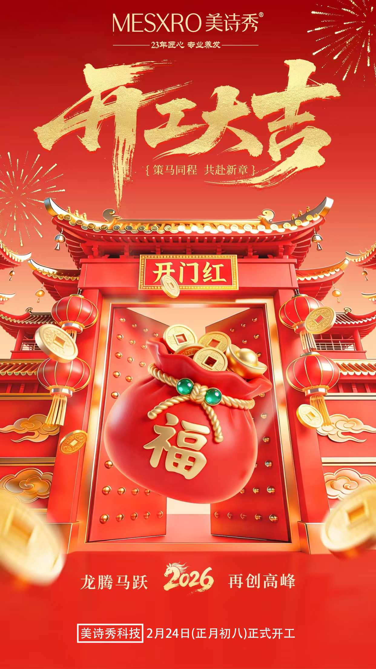新春伊始,万象更新。2026年2月24日(正月初八)公司正式复工。 新的一年,愿我们以“龙马精神”再启新程,以实干笃行,共赴丰盈!